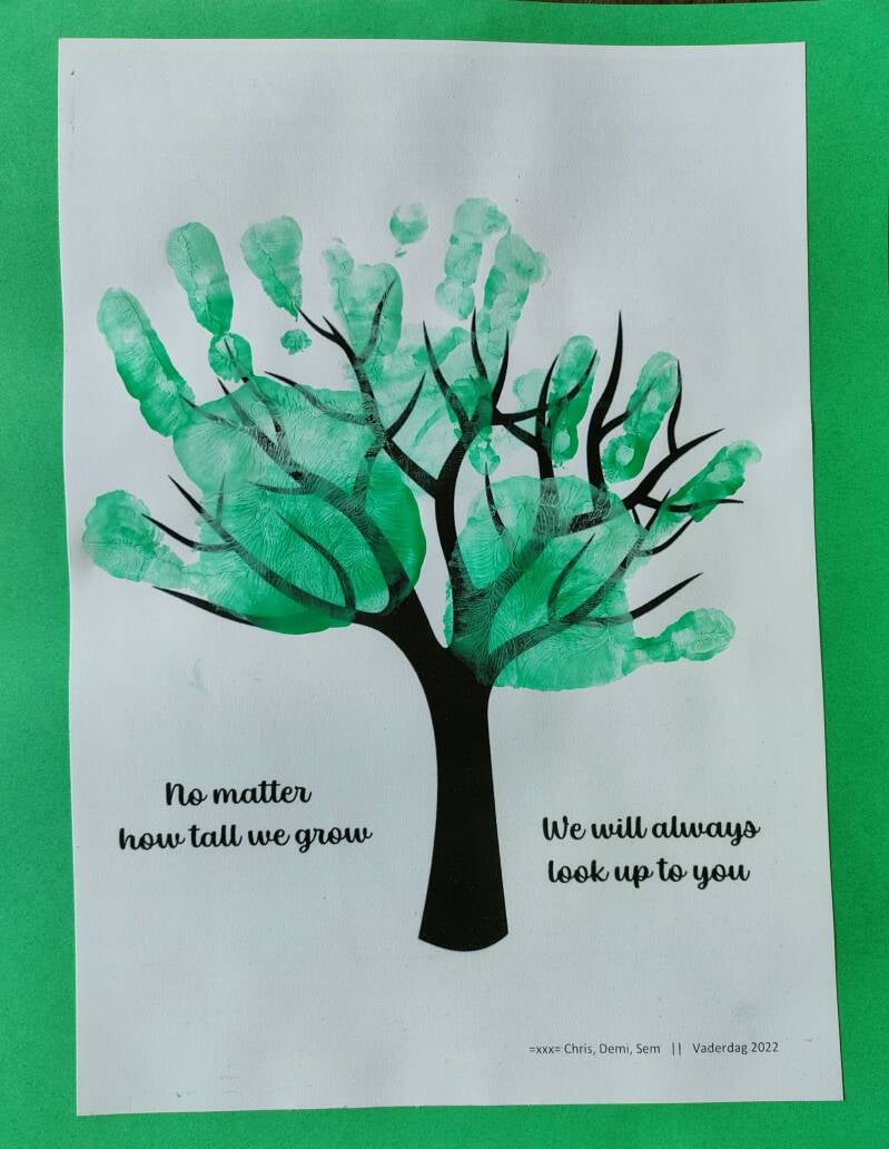 Als een kind naar het kinderdagverblijf of de basisschool gaat dan wordt er daar vaak iets geknutseld. Maar als dat niet het geval is, is het toch wel leuk als de papa en mama verrast worden op hun speciale dag van het jaar. Dat kan met een mooie tekening OF je kan wat wilder uitpakken. Het is hier thuis een soort traditie geworden om een knutsel te geven met de afdrukken van de handen en/of voetjes van onze kinderen. Leuk om te krijgen en mooi voor later. Vergis je niet.. het ziet er misschien simpel uit, maar probeer jij maar eens een stempel te zetten met een baby die zijn knuistje stevig dicht houdt. Meteen een tip: leg er een grote placemat onder, doe het eventueel op de badkamervloer en houd natte doekjes bij de hand. Onze inspiratie kwam meestal van Pinterest. Laat je hieronder inspireren en laat vooral een reactie achter als je zelf nog een geweldig idee hebt.